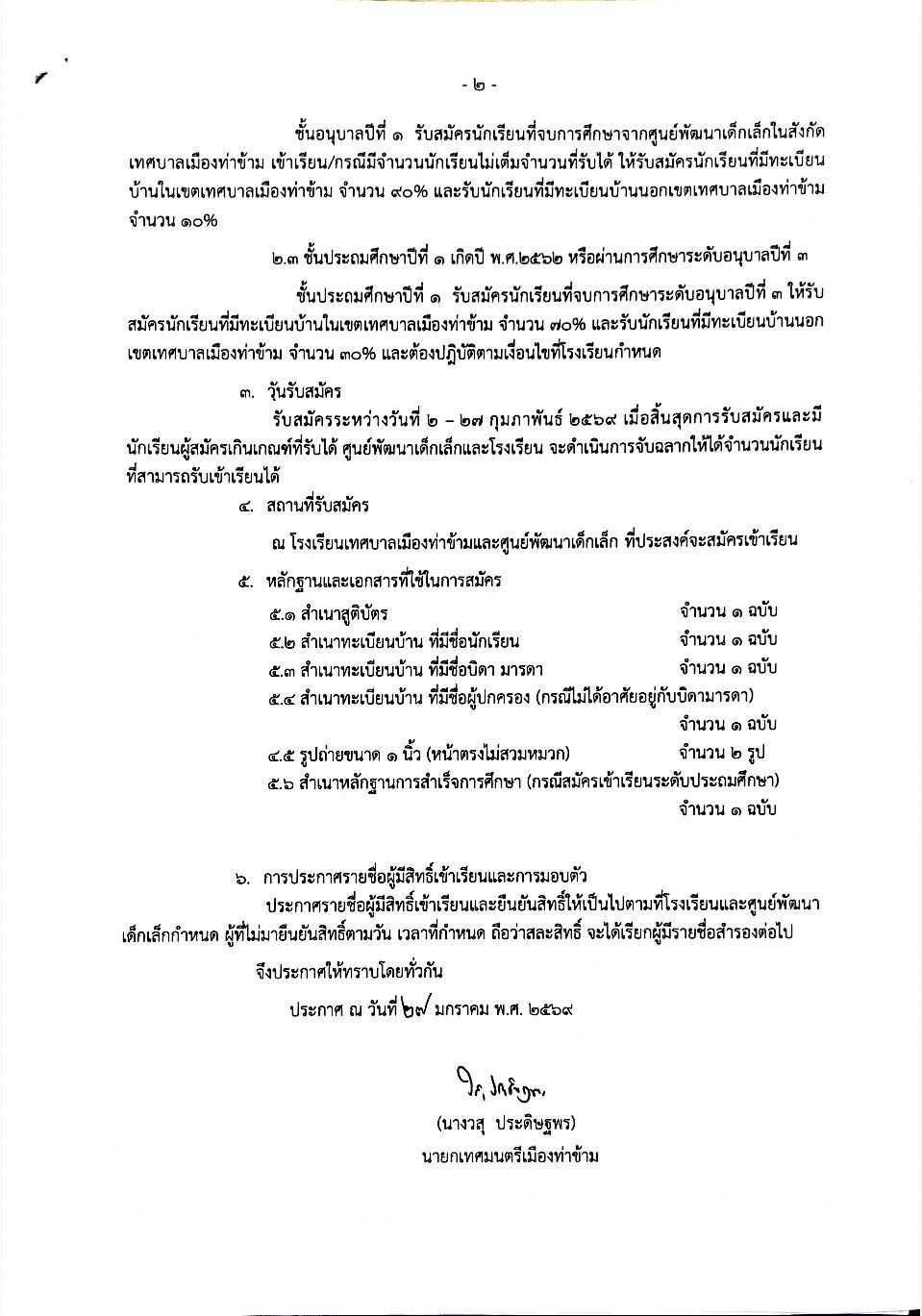 “ประกาศเทศบาลเมืองท่าข้าม เรื่องรับสมัครนักเรียนเข้าเรียนในสถานศึกษา สังกัดเทศบาลเมืองท่าข้าม ประจำปีการศึกษา ๒๕๖๙” #รับสมัครระหว่างวันที่ ๒-๒๗ กุมภาพันธ์ ๒๕๖๙